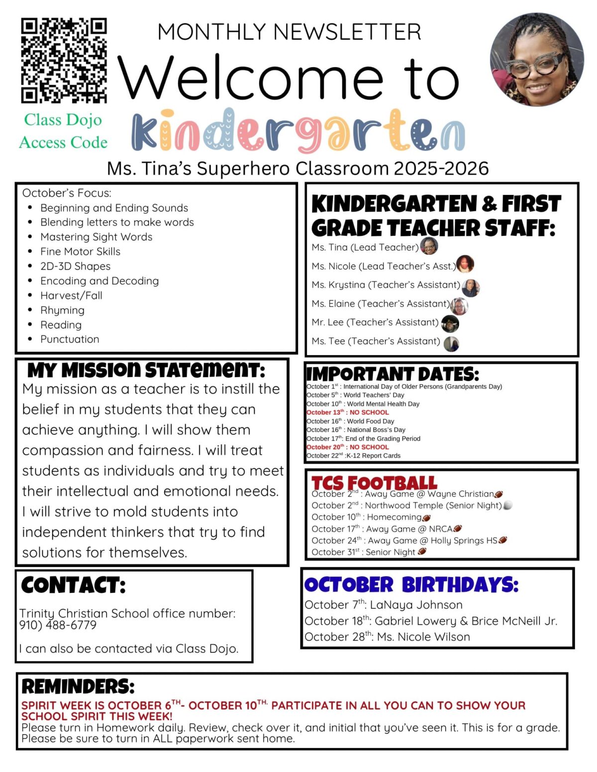 Take a look at our Kindergarten Monthly Newsletter for this month’s Learning Focus, Important Dates, and Events:
